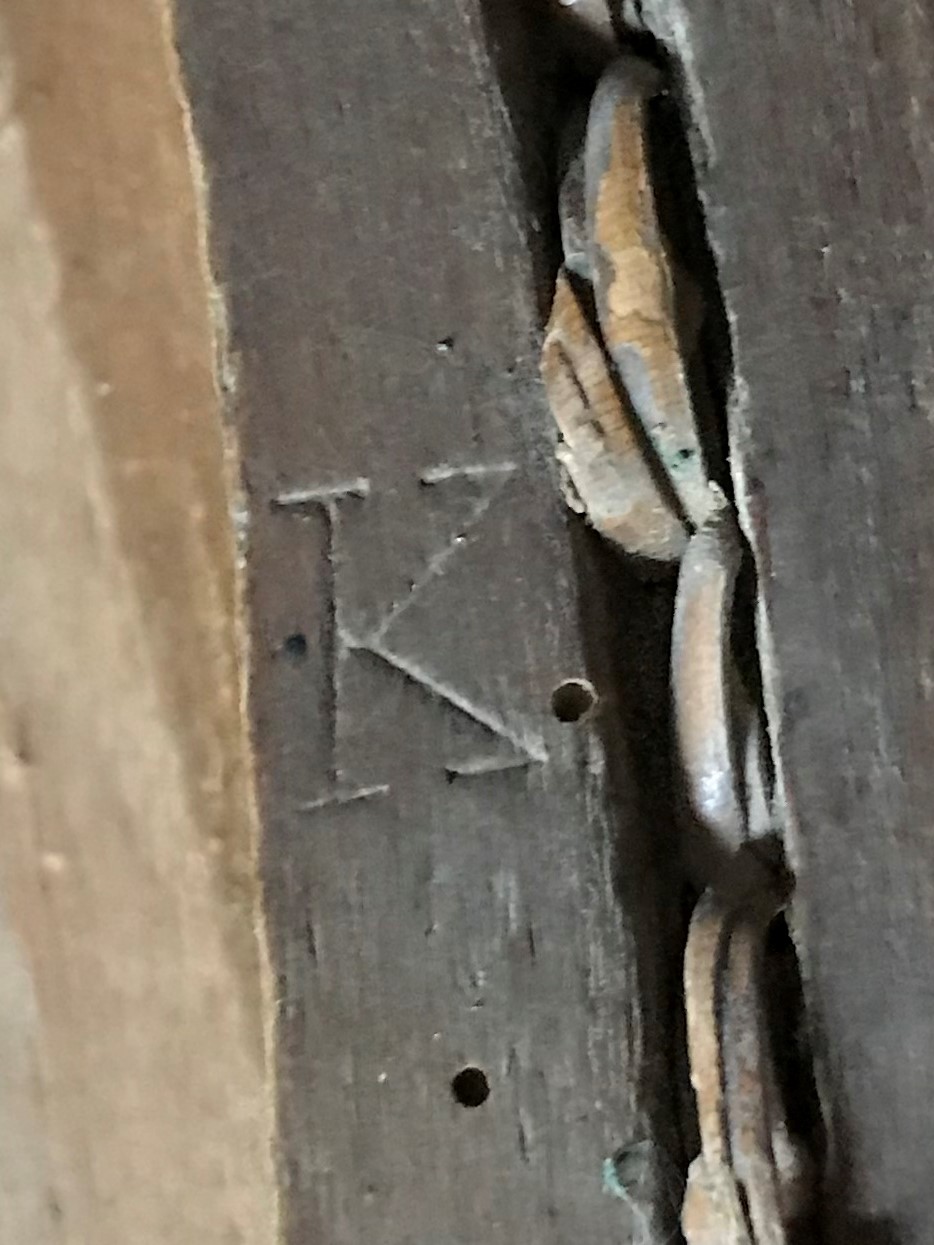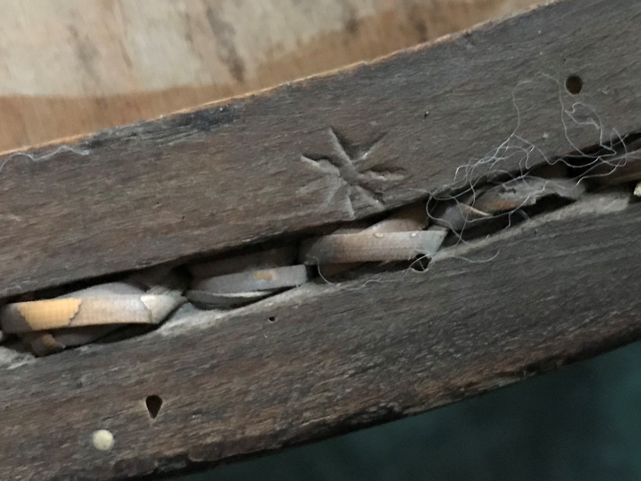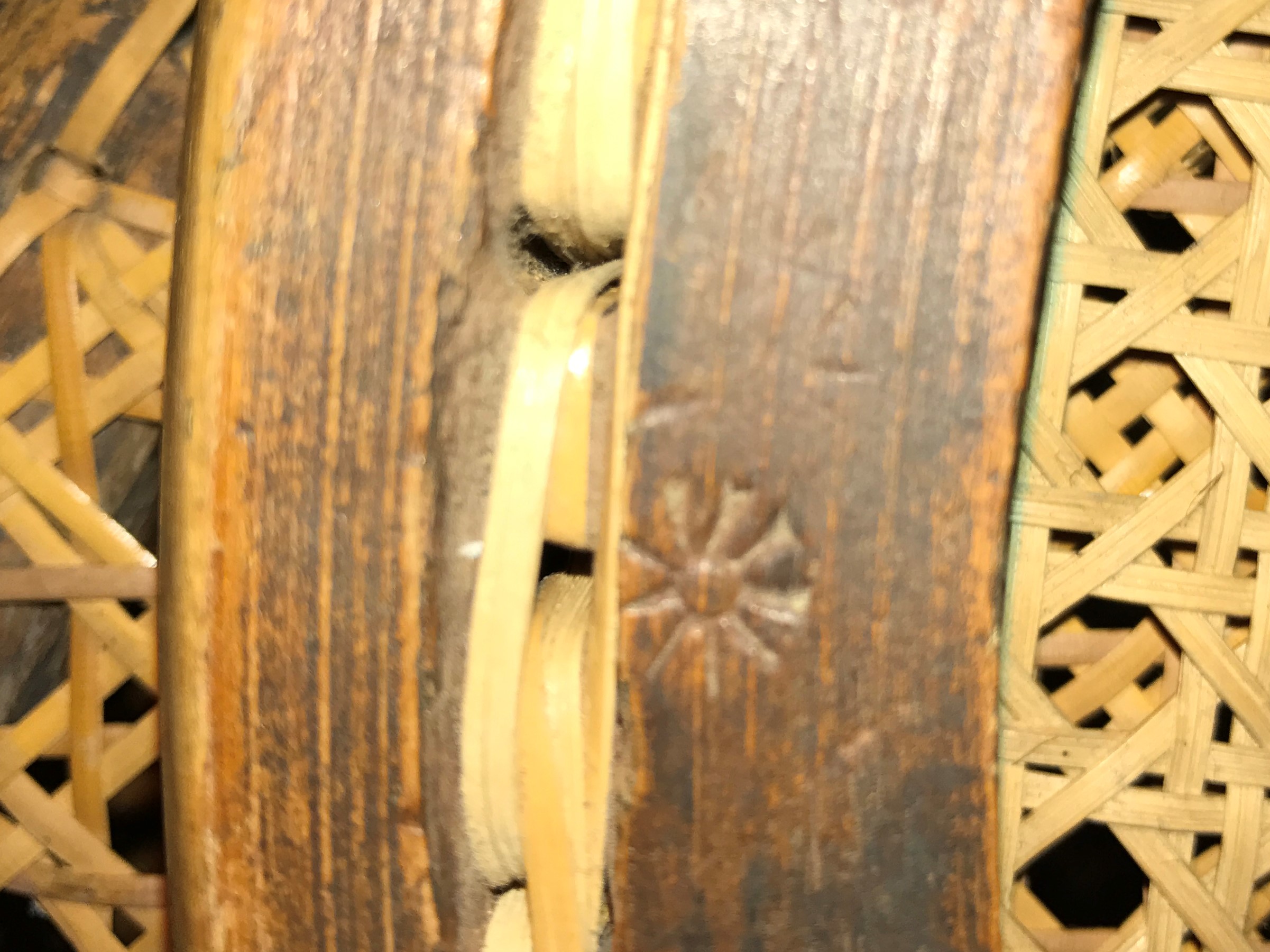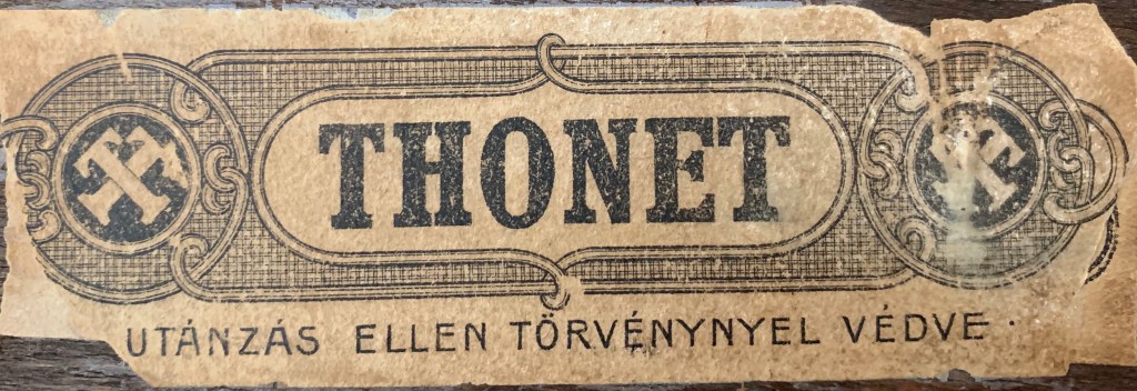 Ab 1919 verwendete Thonet die dritte Schutzmarke. Satt „GT“ nunmehr „T“ in den Ornamenten, was leider auf dem Foto nicht gut zu erkennen ist.