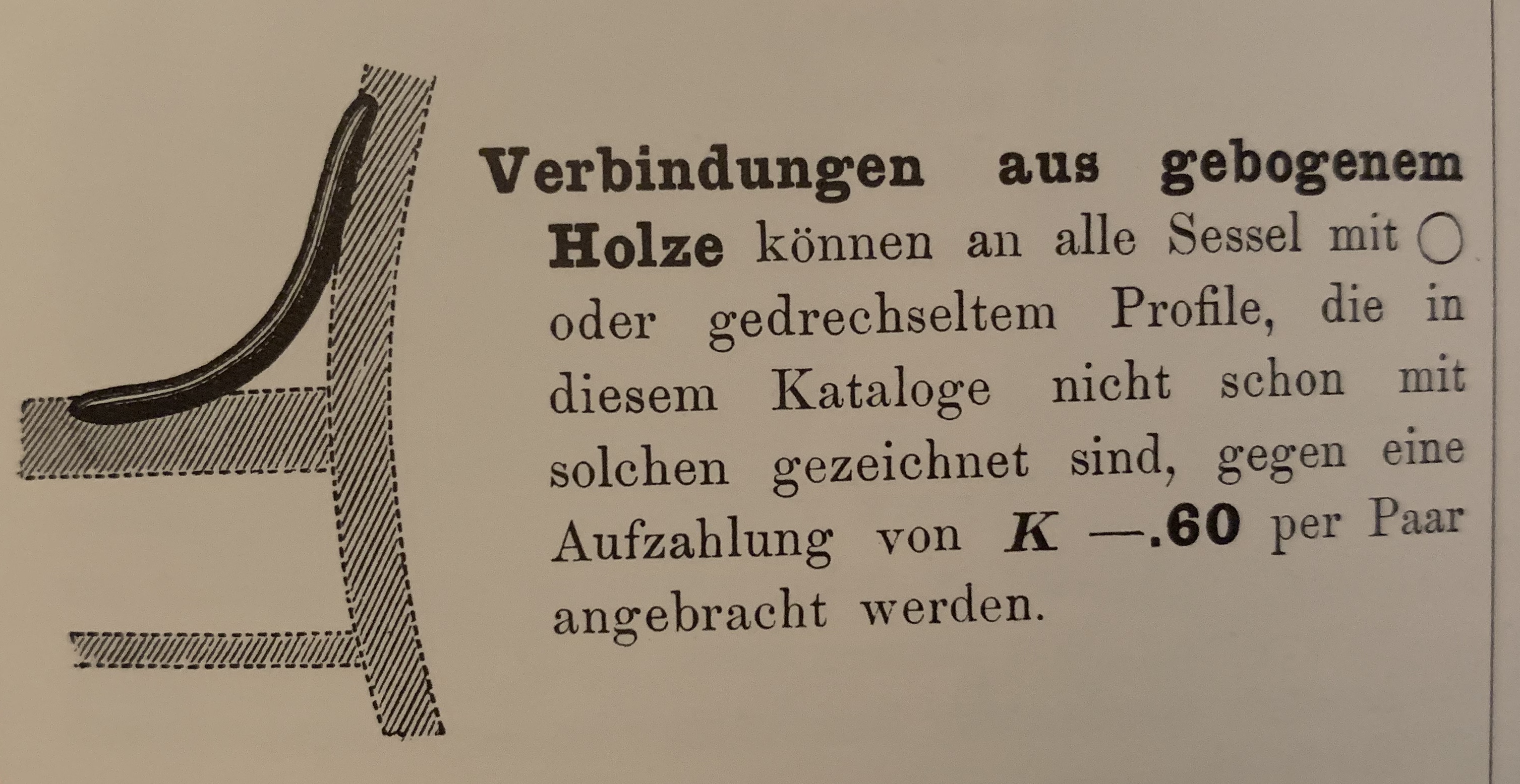 Ein weiteres Merkmal können die Verbindungen zwischen Lehne und Sitzrahmen sein, die ab ca. 1875[3] optional bestellt werden konnten bzw. an manchen Modellen laut Katalog serienmäßig montiert waren.