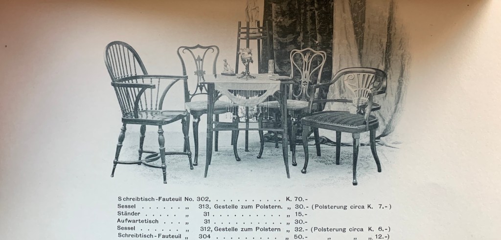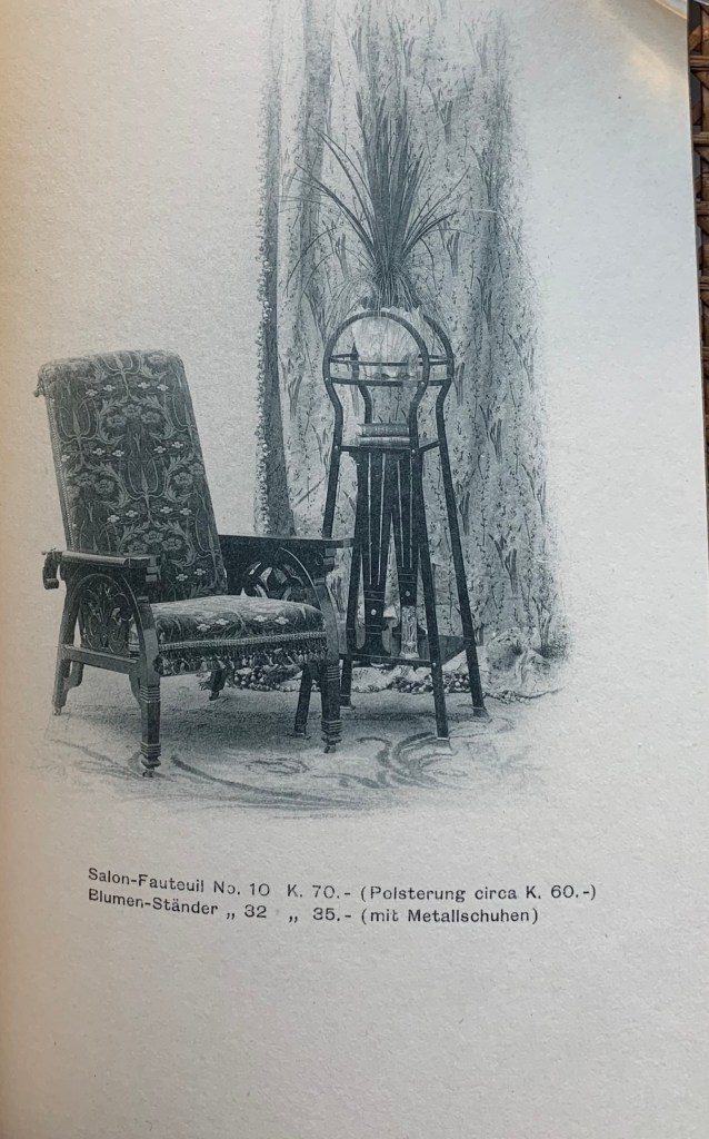 So produzierte Thonet neben den einfachen Möbeln für den Alltagsgebrauch auch „Kunstmöbel“, die offensichtlich dem Geschmack des Adels und Großbürgertums entsprechen sollten. Beim Betrachten des Katalogs kann man sich nur gut vorstellen, dass diese deutlich besser in die damaligen Salons gepasst haben als simple Wirtshaus- bzw. Kaffeehaussessel.