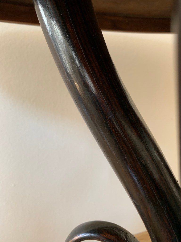 Es handelt sich um eine frühe Fertigung, da die späteren Tische vollumfänglich massiv gebogen wurden. Eine genaue zeitliche Einordnung ist freilich schwierig, da nicht bekannt ist, wann genau bei Tischen auf die massive Fertigungstechnik umgestellt wurde.