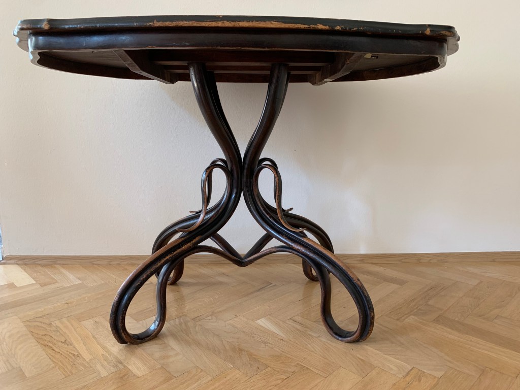 Dass Thonet bereits in seinen Wiener Anfangsjahren Tische fertigte, ist nicht nur durch Illustrationen der Weltausstellung 1851 in London belegt, sondern auch durch Anzeigen aus dem Jahr 1853, in denen Tische für Preise von 15 bis 600 Gulden angepriesen werden. Da die Spanne sehr breit ist, ist davon auszugehen, dass zu diesem Zeitpunkt nicht nur die aufwändigen Salonmöbel, die bei der Weltausstellung zu sehen waren, gefertigt wurden, sondern auch einfachere Tische.